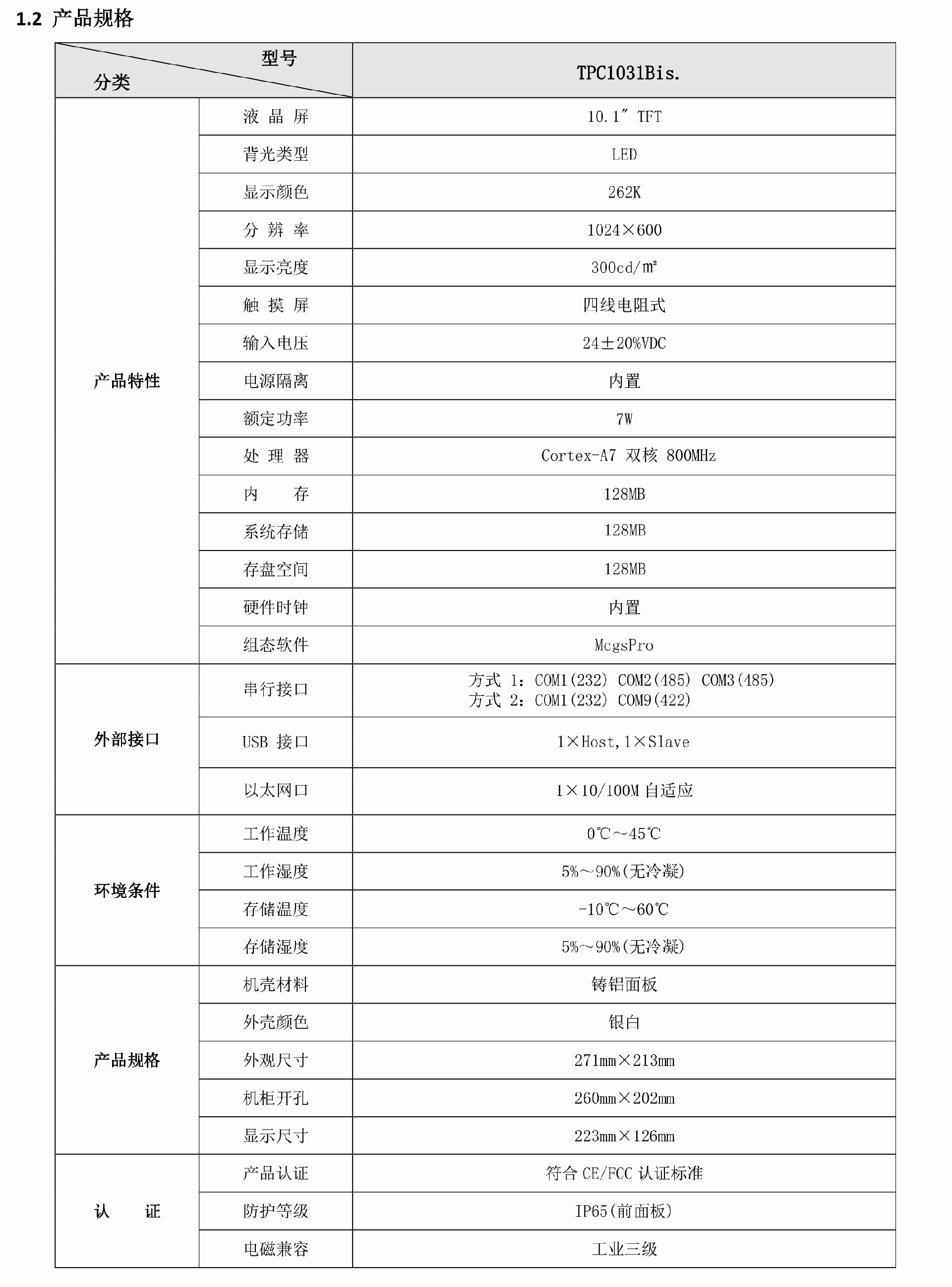 MCGS昆仑通态TPC1021Bd 10.1寸触摸屏