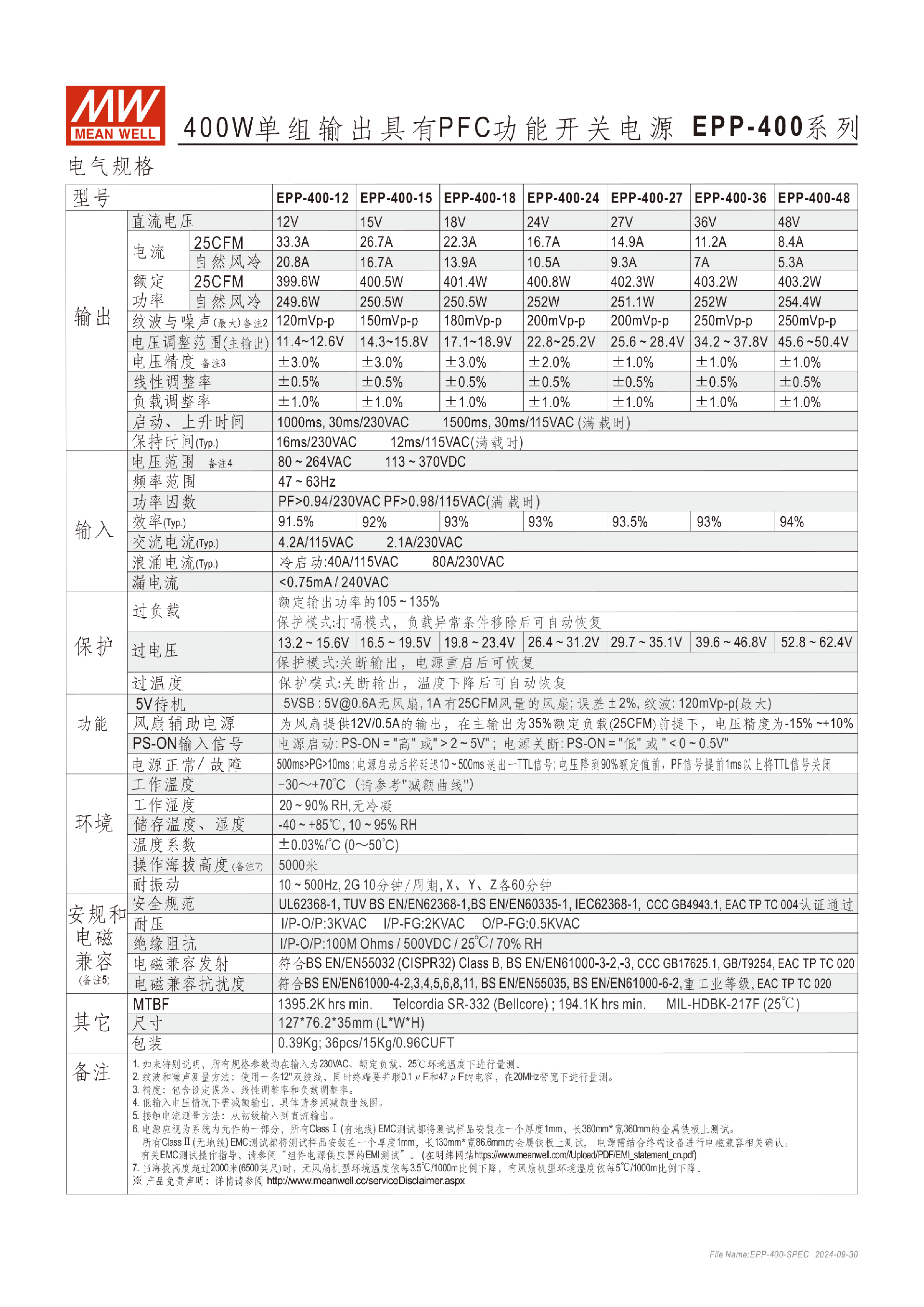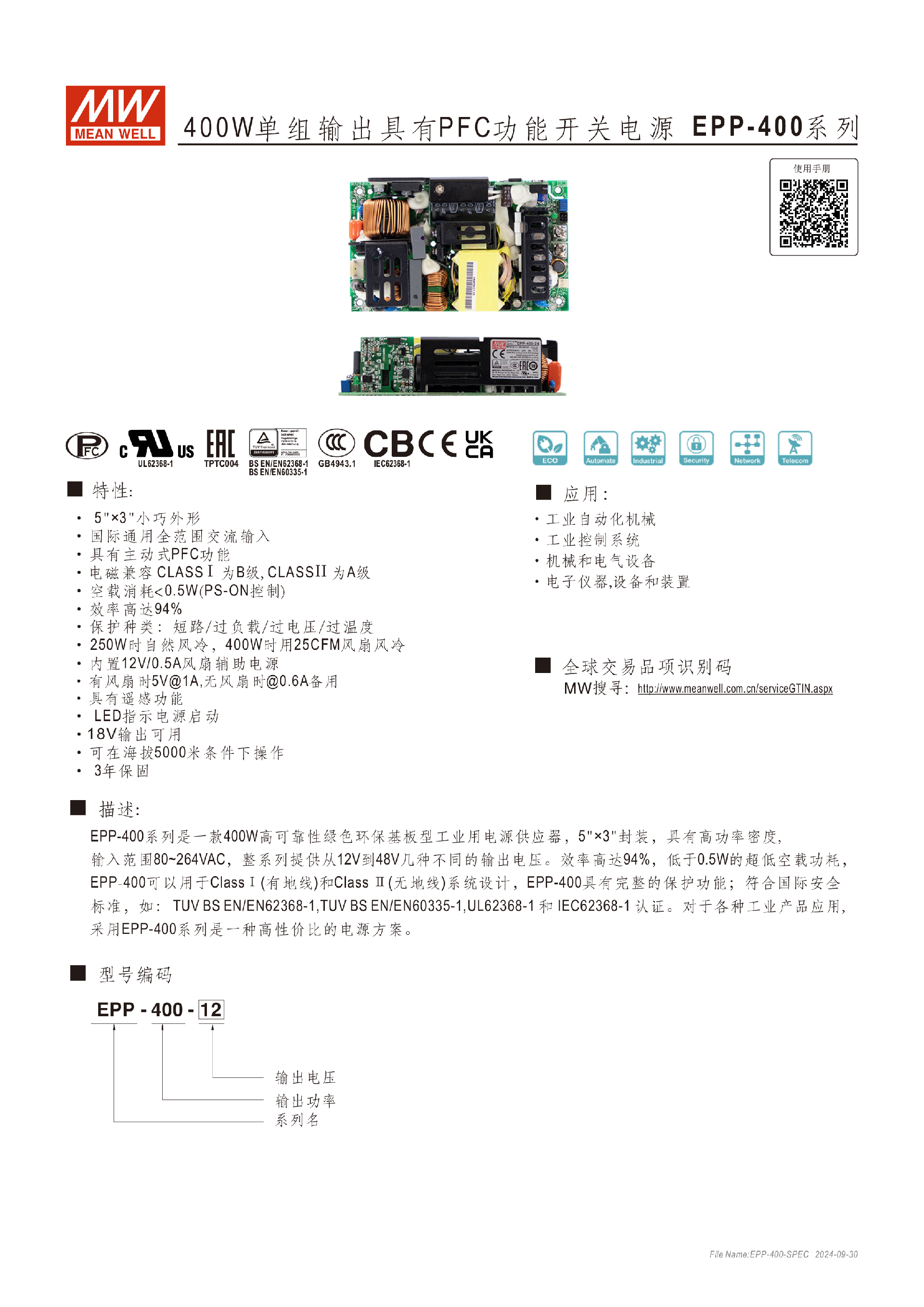 台湾明纬EPP-200系列200W单组输出开关电源